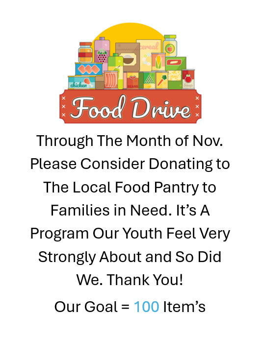 For the month of November our Youth Group will be collecting Canned Food Item's